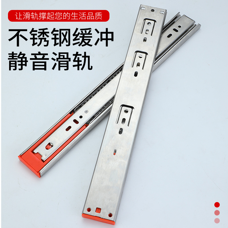 Pabrik grosir geser baja tahan karat 45 lebar buffer redaman laci lemari pakaian bisu menebal tri-lipat rel track