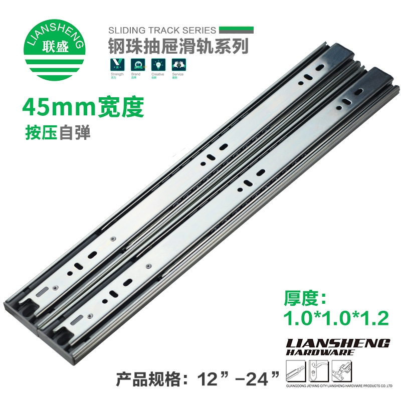 Liansheng rel geser laci rebound rel furnitur laci rel geser bola rel panduan 45 lebar NO:PO4501