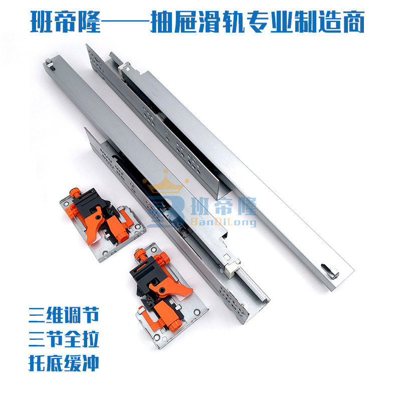 Kabinet pakaian baja tahan karat, Laci tiga bagian rebound rel geser rumah tangga, penyangga tidak bersuara, rel panduan jalur tiga lipatan