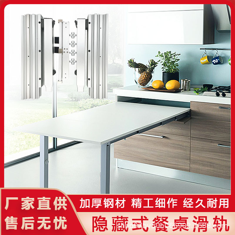 Meja Makan lipat tersembunyi rel geser dapur, aksesori perangkat keras rel meja makan dorong datar terpasang di samping kabinet paduan aluminium tidak terlihat