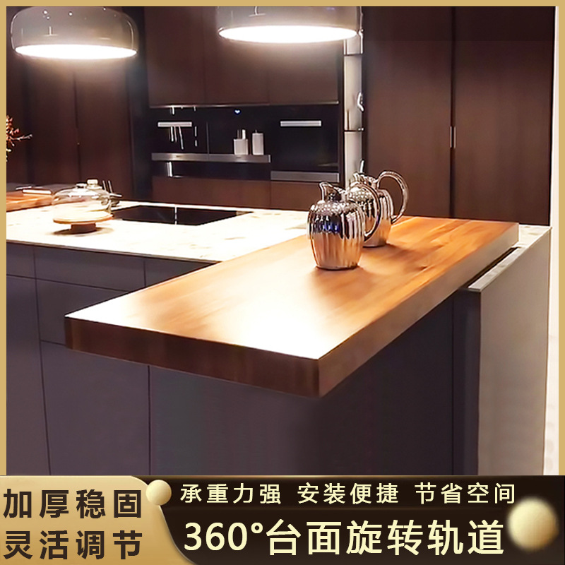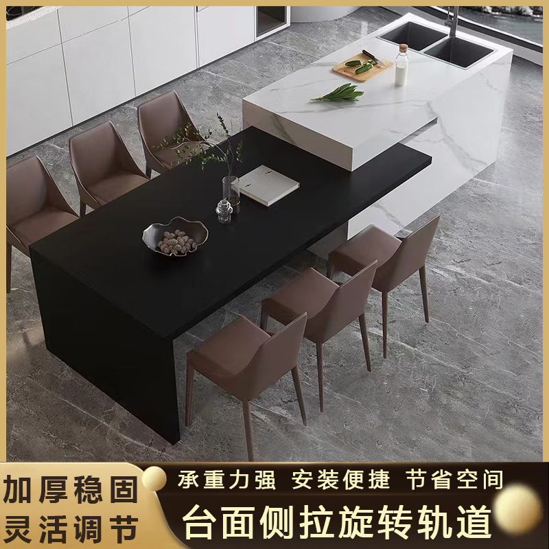 Meja Pulau Tengah dapur dapat bergerak kiri dan kanan berputar rel geser meja makan bar desktop teleskopik jalur ekstensi perangkat keras