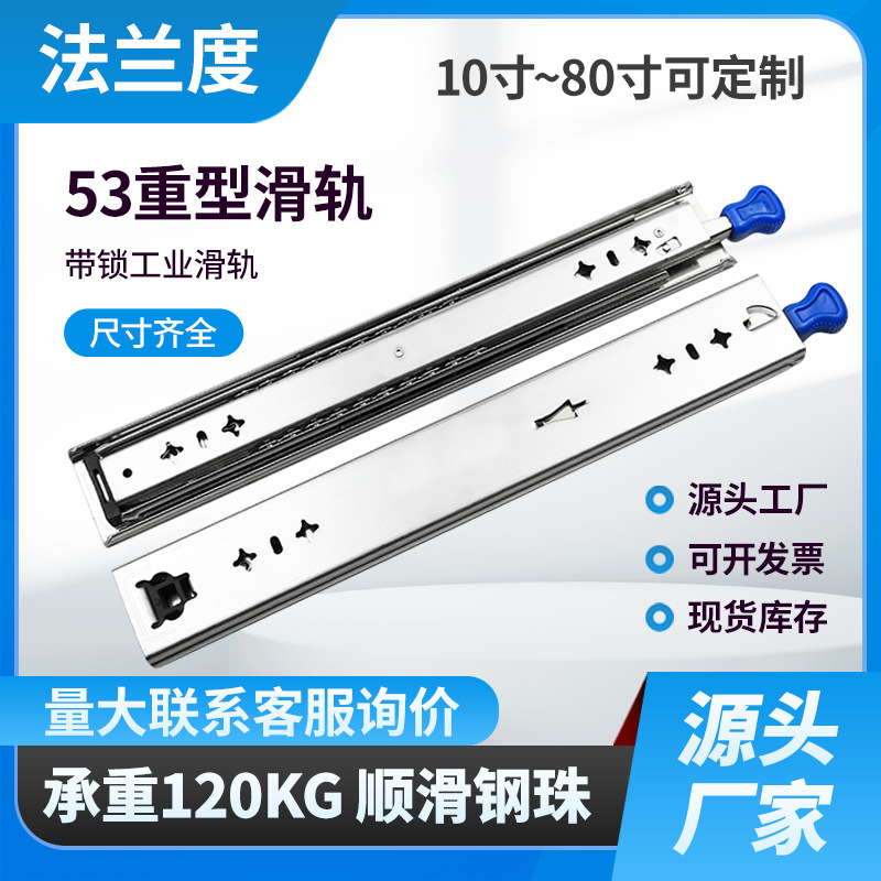 53 Kunci Broadband Alat Berat Rel Geser Tiga Bagian Lemari Rel Panduan Bola Baja RV Industri Laci Track Hardware Grosir