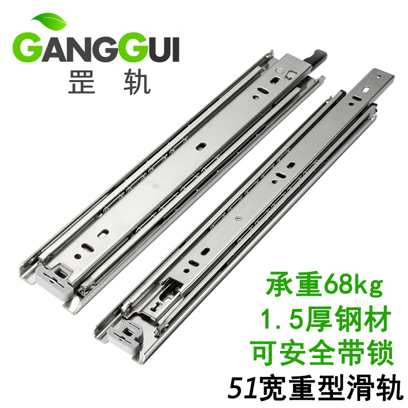 51 lebar tiga bagian mengunci sendiri tugas berat kabinet geser RV panduan lemari pakaian rel laci dipertebal dengan kunci rel geser tugas berat