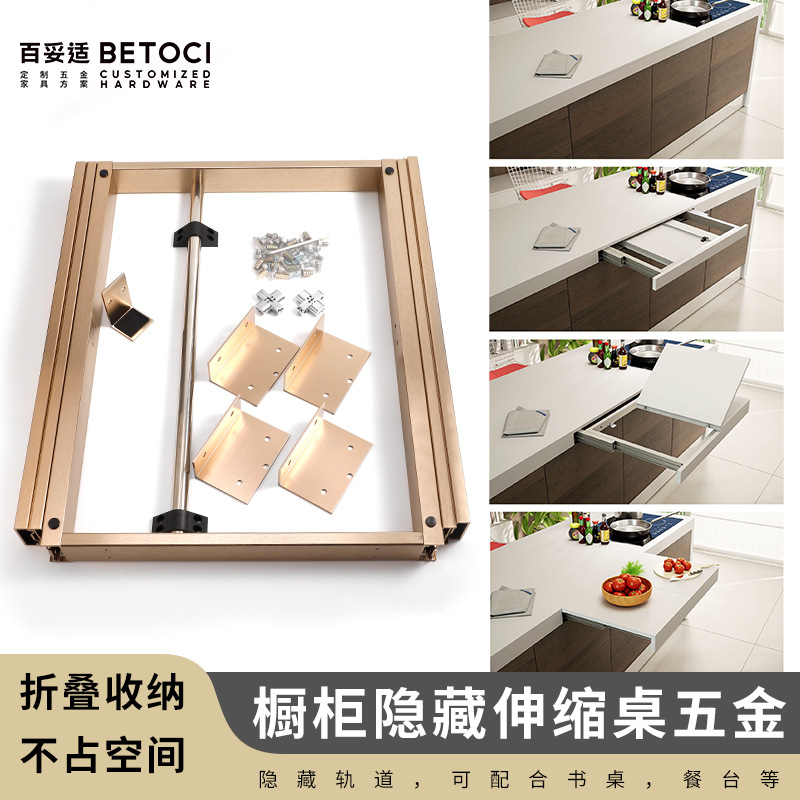 Rel panduan lipat teleskopik, tersembunyi datar, multi-fungsi, Laci meja makan, rel geser