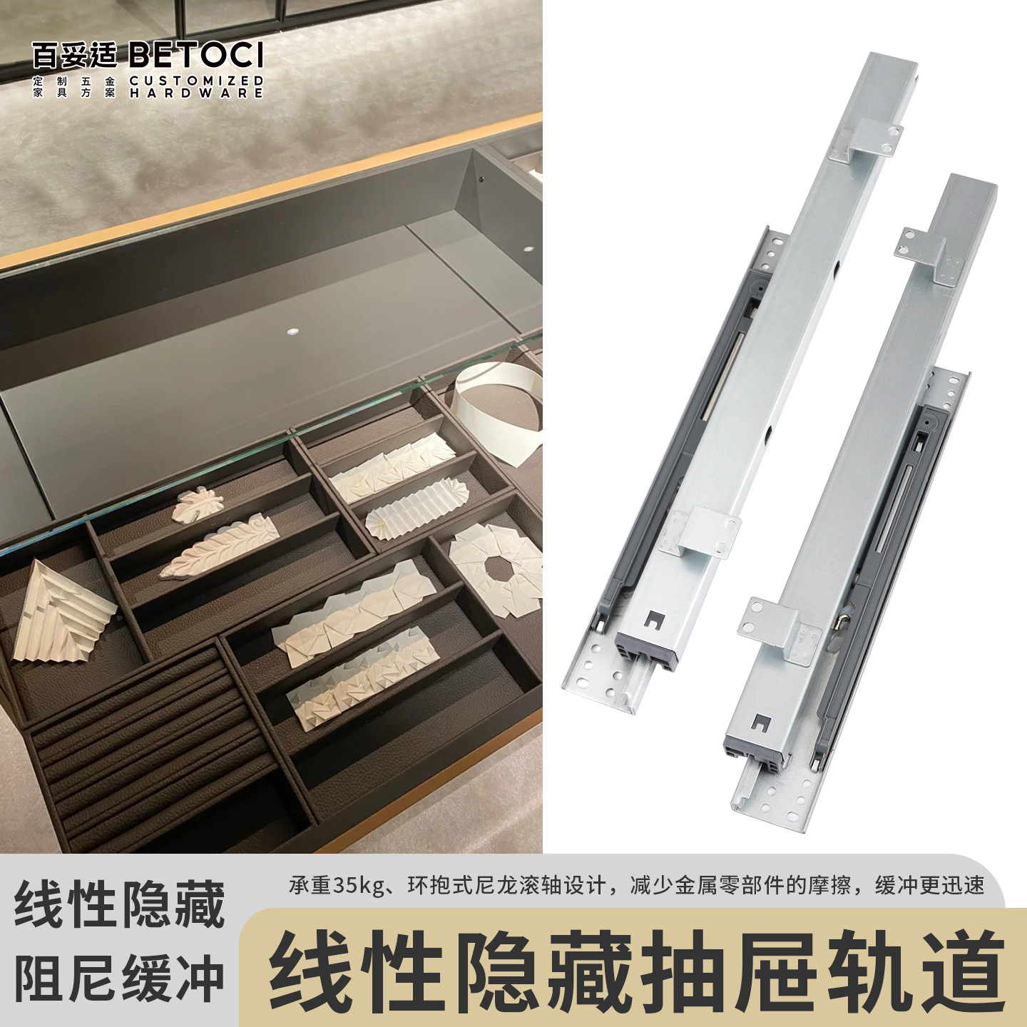 Tersembunyi Sole Slide Track Tiga Lipat Penuh Tarik Model Kabel Lemari Perhiasan Lemari Tampilan Laci Teredam Jalur Slide