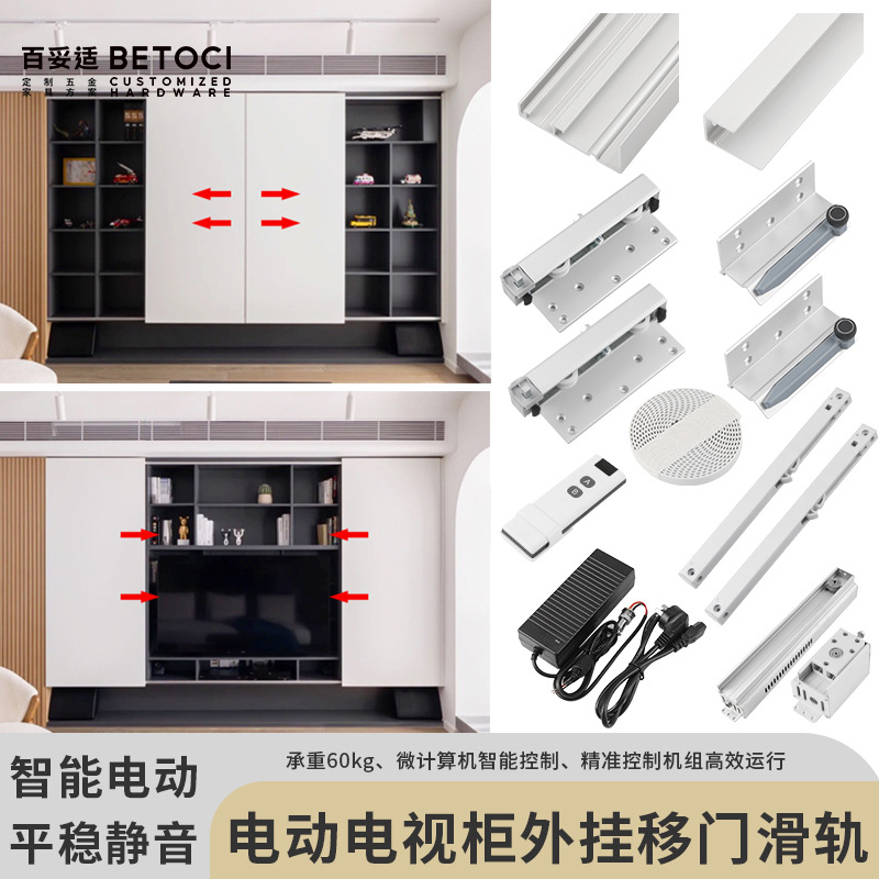 Aksesoris Perangkat Keras Paduan Aluminium Slide Pintu Geser Pintu Geser Jarak Jauh Lemari TV Jarak Jauh