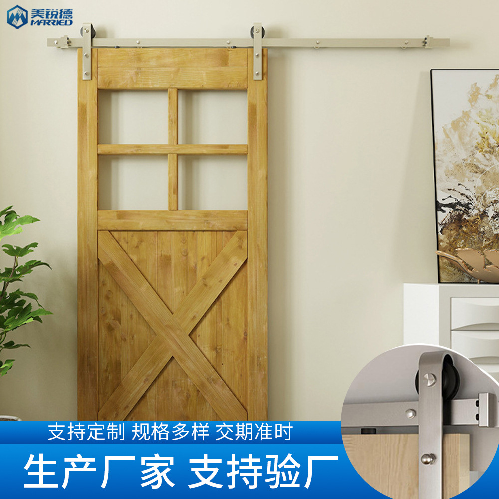 Rel gantung pintu gudang gaya Amerika, jalur roda ganda 304 stainless steel, roda gantung pintu geser dalam ruangan, rel geser kamar mandi