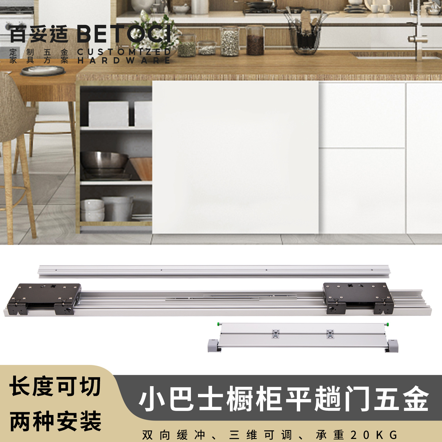 Kabinet gantung, kabinet gantung datar, jalur pintu bus, penyangga dua arah, peredam lantai, pintu geser tidak terlihat, rel geser, Aksesori roda pintu geser