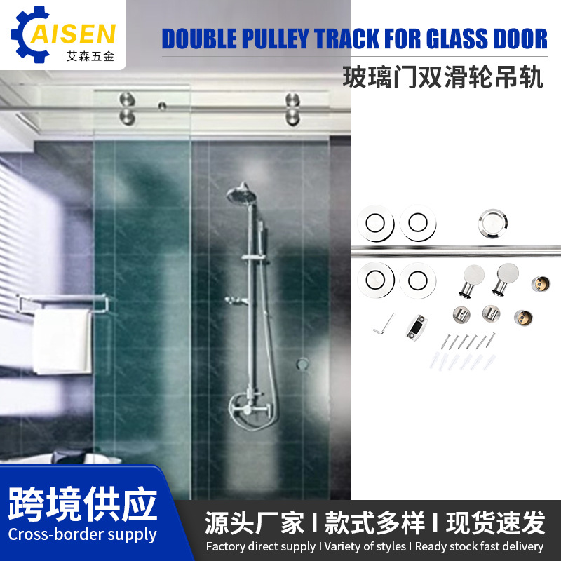 Rel Gantung Pintu Kaca Katrol Ganda Lintas Batas Set Rel Katrol Kaca Kamar Mandi Kamar Mandi Rumah Tangga
