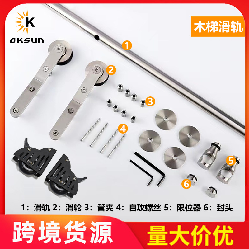 Tangga dari kayu baja tahan karat rak buku geser tangga eskalator Ator rak buku rumah tangga tabung buku tangga aksesori perangkat keras grosir