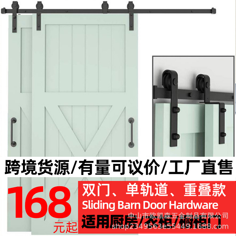 Okesengu gantungan pintu gudang, rel gantung pintu gudang tumpang tindih, jenis berlawanan, roda geser, rel geser, pintu geser, aksesori perangkat keras, set lengkap