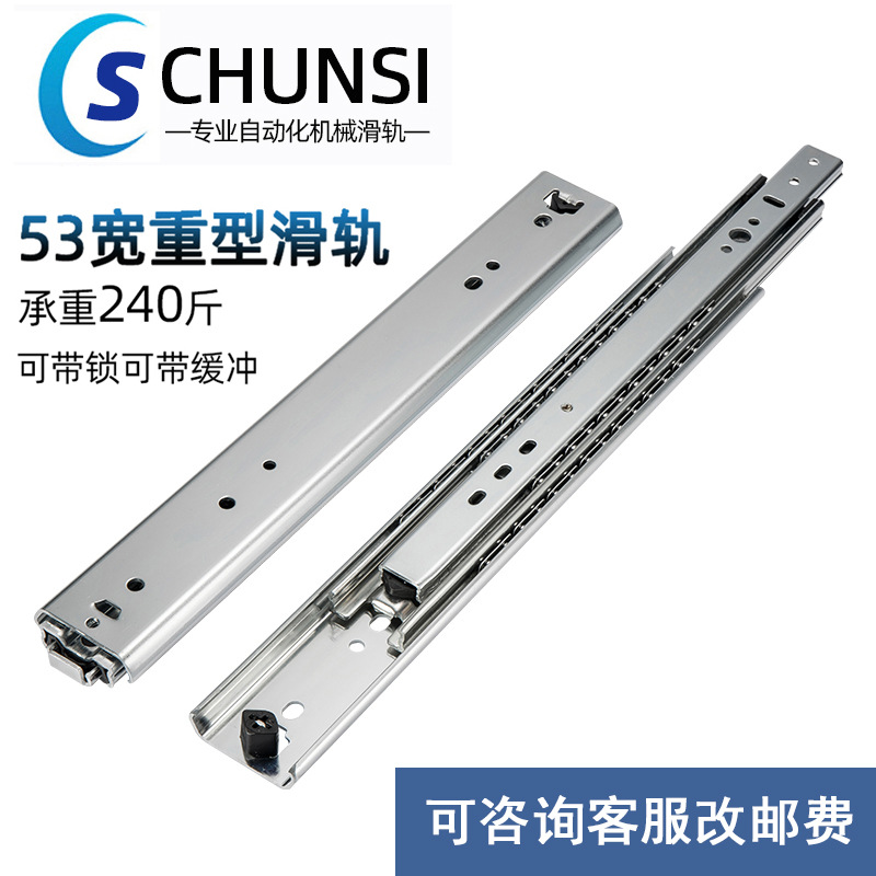 53mm lebar menebal industri beban berat laci rel geser penyangga redaman panduan rel perabotan trek tiga bagian rel produsen tetap