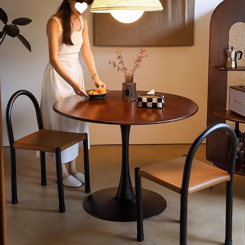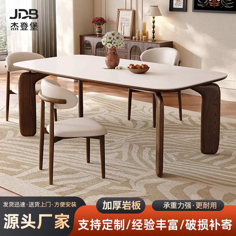 Meja Makan Papan Batu Retro dengan Meja Bundar Kayu Solid Model Baru Rumah Tangga Tipe Kecil Minimalis High-end