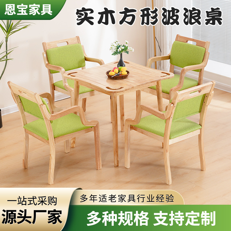 Meja Makan Penuaan Kustom Kursi Meja Kayu Solid Rumah Perawatan Kursi Perabot Restoran Fasilitas Perawatan Kesehatan Kursi Lansia