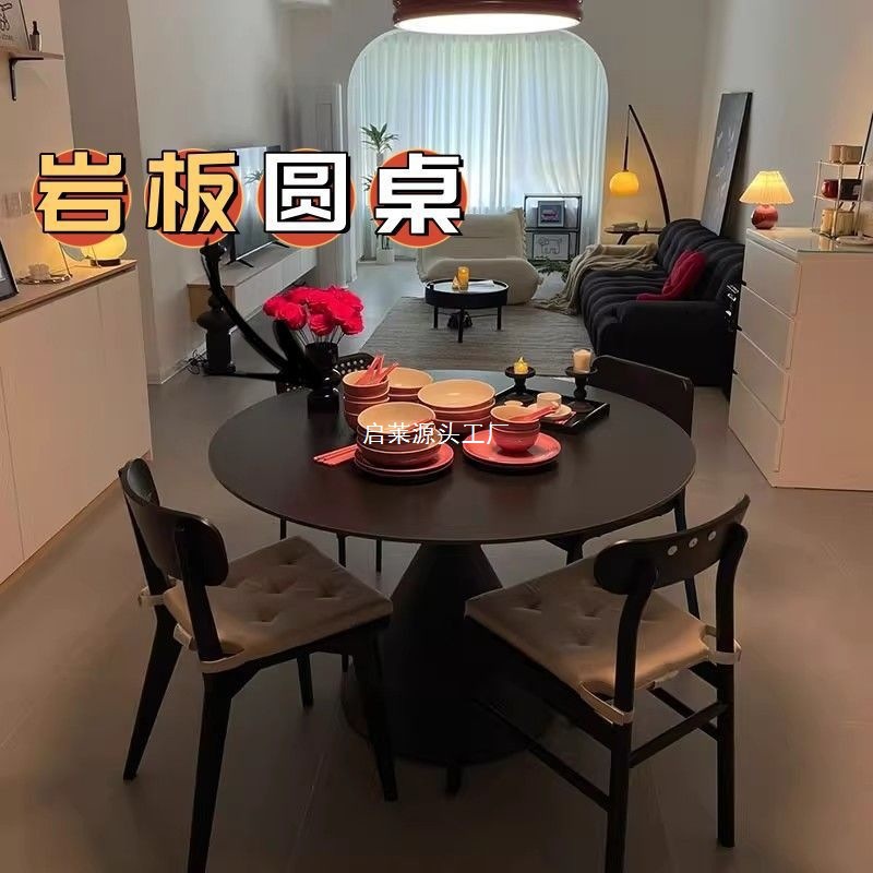 Meja Makan Bentuk Bulat Papan Batu Krim Gaya Prancis Meja Makan Rumah Tangga Meja Bundar Sederhana Modern Unit Kecil Meja Makan Rumah Tangga Kombinasi Kursi