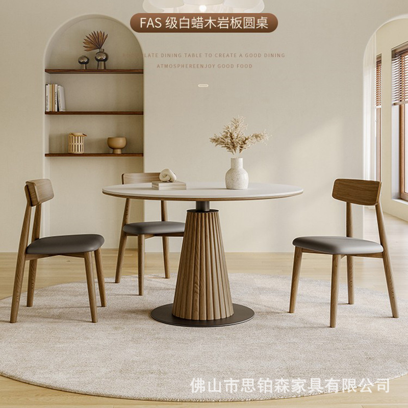 Nordic set meja bulat kayu polos, meja makan rumah tangga minimalis desainer kecil apartemen bulat 4 orang, meja makan batu dan set kursi