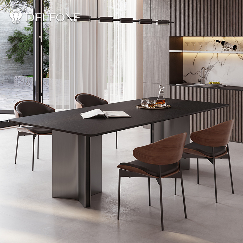 Meja Makan piring batu delifeng hitam kuno tengah meja makan sederhana modern ringan mewah persegi panjang apartemen kecil gaya sunyi meja makan rumah