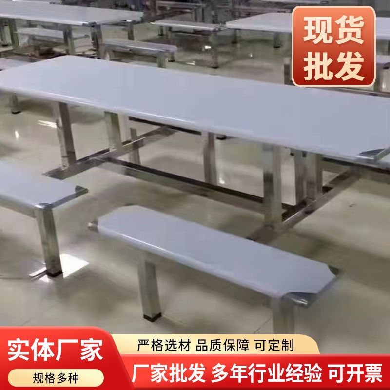 Set meja dan kursi makan siap pakai, terintegrasi untuk 4 atau 6 orang, cocok untuk sekolah, pabrik, kantin perusahaan, dan restoran.