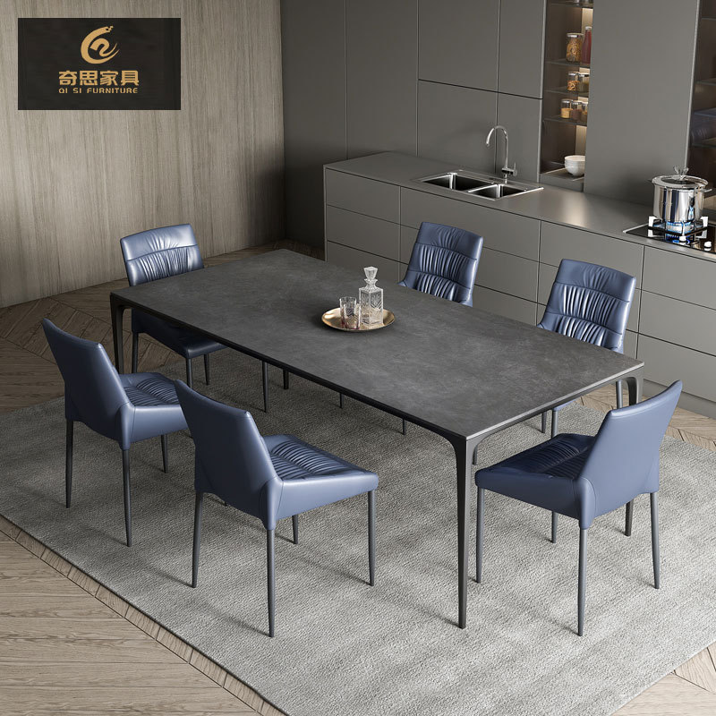 Meja Makan piring batu Italia, meja makan rumah tangga meja makan aluminium Aloi modern sederhana persegi panjang kombinasi kursi