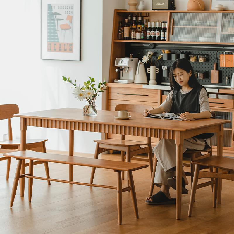 Meja makan kayu padat Nordic, meja makan dengan laci persegi panjang kayu ceri, meja makan rumah, apartemen kecil, meja makan dan kombinasi kursi