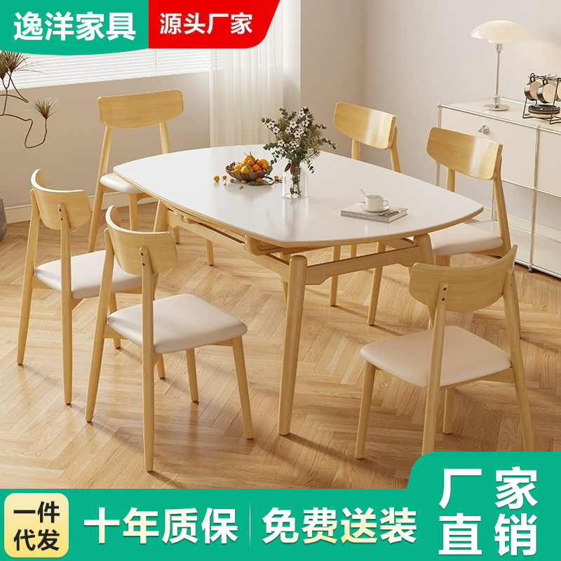 Luji krim gaya kayu padat dapat ditarik piring batu meja makan Nordik apartemen kecil rumah tangga persegi penggunaan ganda log meja makan lipat