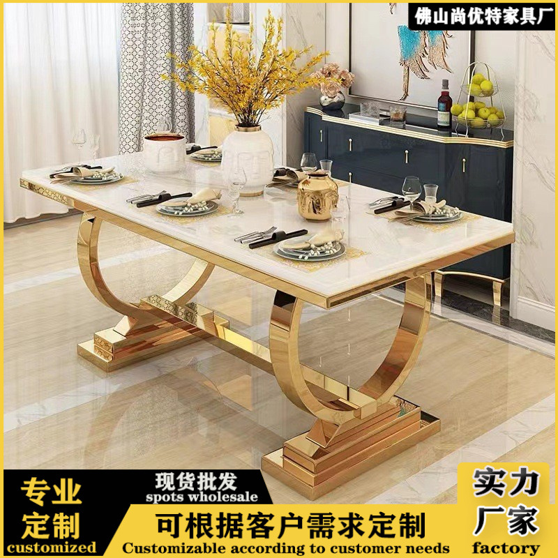 Meja Makan rumah gaya mewah, meja makan dan kursi kecil apartemen, Meja panjang, kombinasi persegi panjang, furnitur marmer, meja makan rumah
