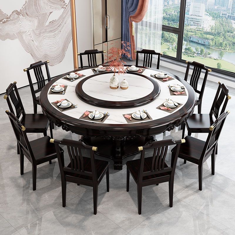 Meja makan kayu padat ukiran antik gaya Tiongkok, kotak Hotel rumah 10 orang 12 orang 16 orang, Meja bulat besar