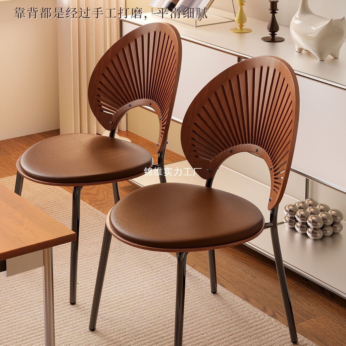 # Kursi Kerang Kursi Makan Kayu Solid Eropa Utara Kursi Rumah Tangga Dapat Ditumpuk Internet Kursi Punggung Kenari Hitam Gaya Pertengahan