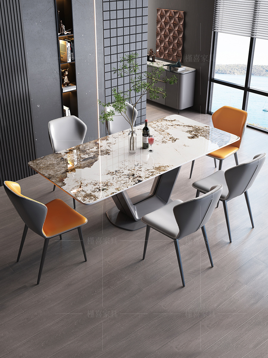 Piring batu terang Italia, meja makan dan kursi kombinasi cahaya mewah modern sederhana rumah tangga apartemen kecil persegi panjang restoran meja makan