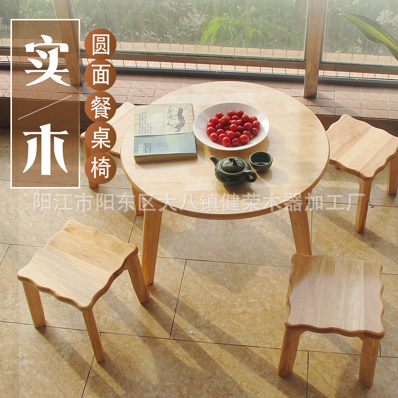Kursi meja bulat kayu polos, meja makan bulat kecil gaya Nordik, meja kopi log apartemen kecil, kayu Solid