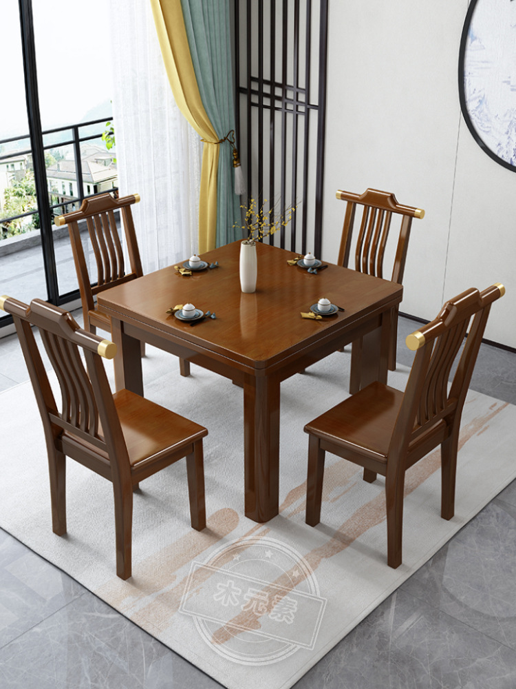 Meja Makan mini komersial restoran, meja persegi kecil kayu padat murni, meja makan rumah, catur balkon dan meja kartu, Meja bermain kuno