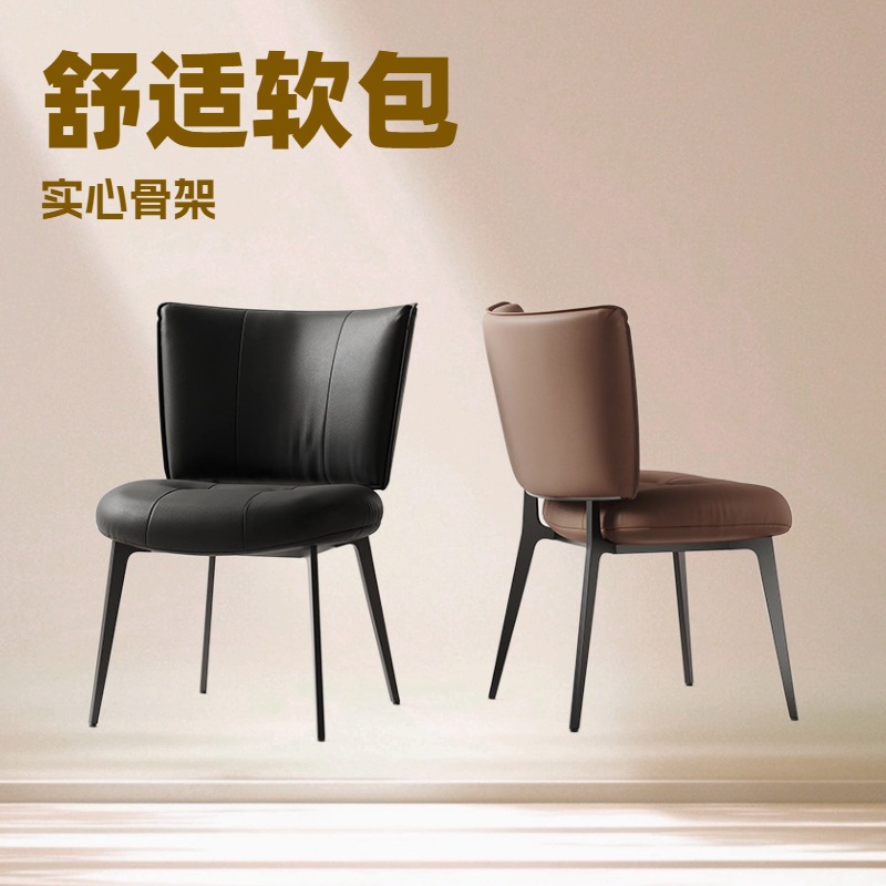 Kursi Makan Minimalis Gaya Italia Kursi Negosiasi Hotel Mewah Ringan Perancang Rumah Tangga Kursi Sandaran Kulit Asli Kursi Makan Tas Lembut Kelas Atas