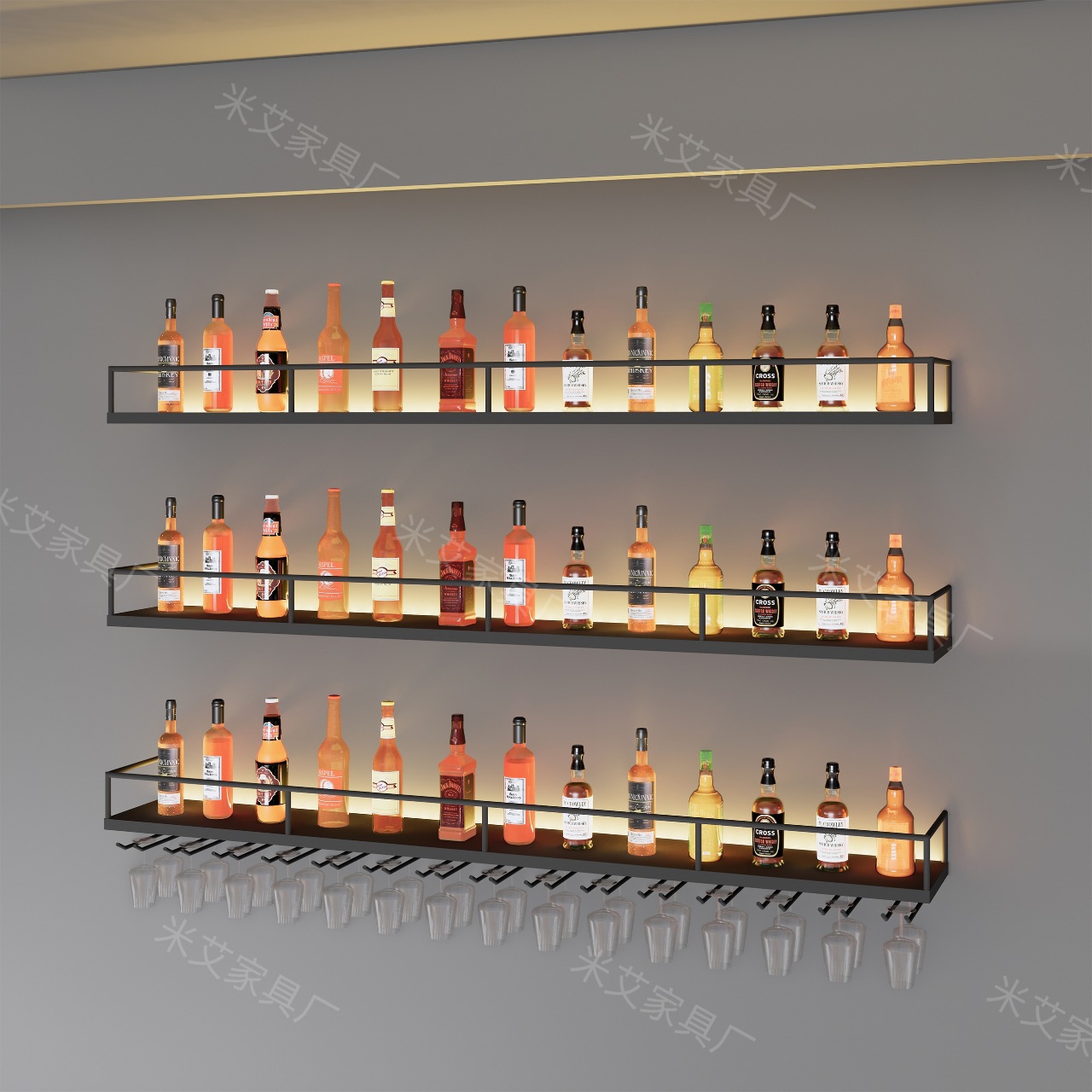 Bar Anggur terpasang di dinding lemari anggur pemancar cahaya Rak Besi Wine Internet selebriti Restoran pub bar bening rak pajangan anggur