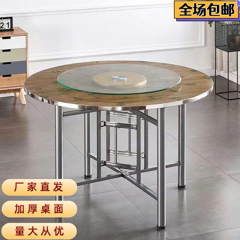 Meja makan baja sisi baja, Meja bulat besar, dudukan meja makan dengan meja putar, Meja makan, Meja LARI UNTUK restoran meja rumah tangga