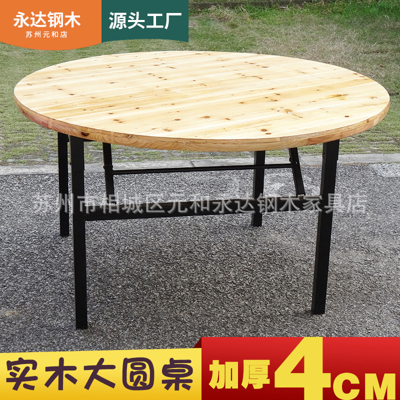 Grosir dilipat kayu padat besar meja bulat hotel Fir bulat meja perjamuan pernikahan meja bulat