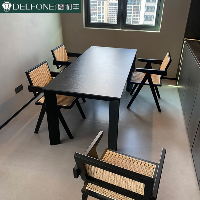 Delifeng piring minimalis Italia, meja makan meja konferensi persegi panjang modern sederhana cahaya mewah rumah apartemen kecil meja makan