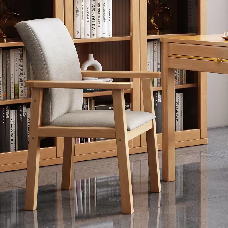 Kursi kayu padat Nordic, kursi makan rumah kursi komputer modern kursi komputer santai berlengan kursi kantor belajar meja dan kursi