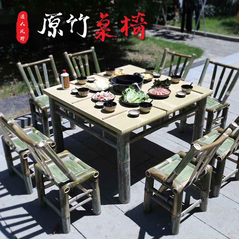 Meja Makan Bambu Meja Persegi Komersial Meja BBQ Restoran Hot Pot Meja Kursi Bambu Retro Restoran Set Meja Meja Kursi Restoran
