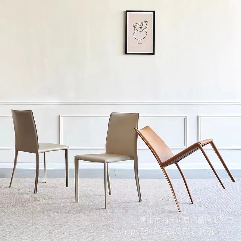 Kursi Makan rumah minimalis desainer Nordik, kursi belakang kulit sadel hotel Italia dapat ditumpuk