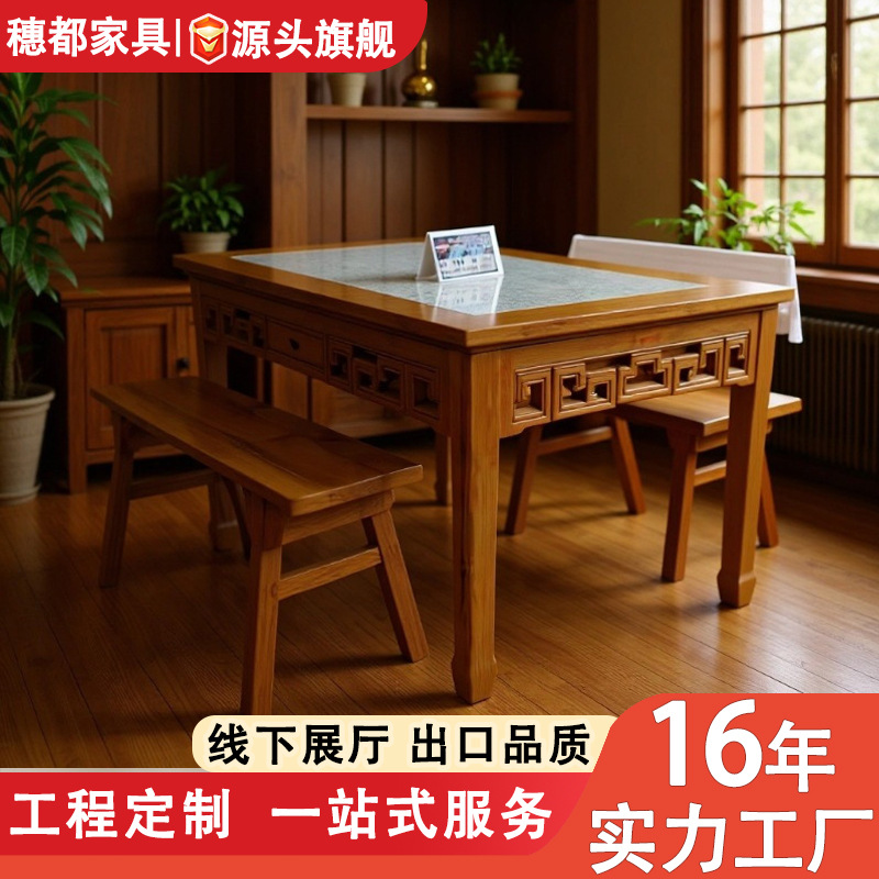 Piring batu kayu padat meja restoran dan kursi, kombinasi komersial baru gaya Tiongkok delapan Peri meja restoran mie ruang tengah pedesaan