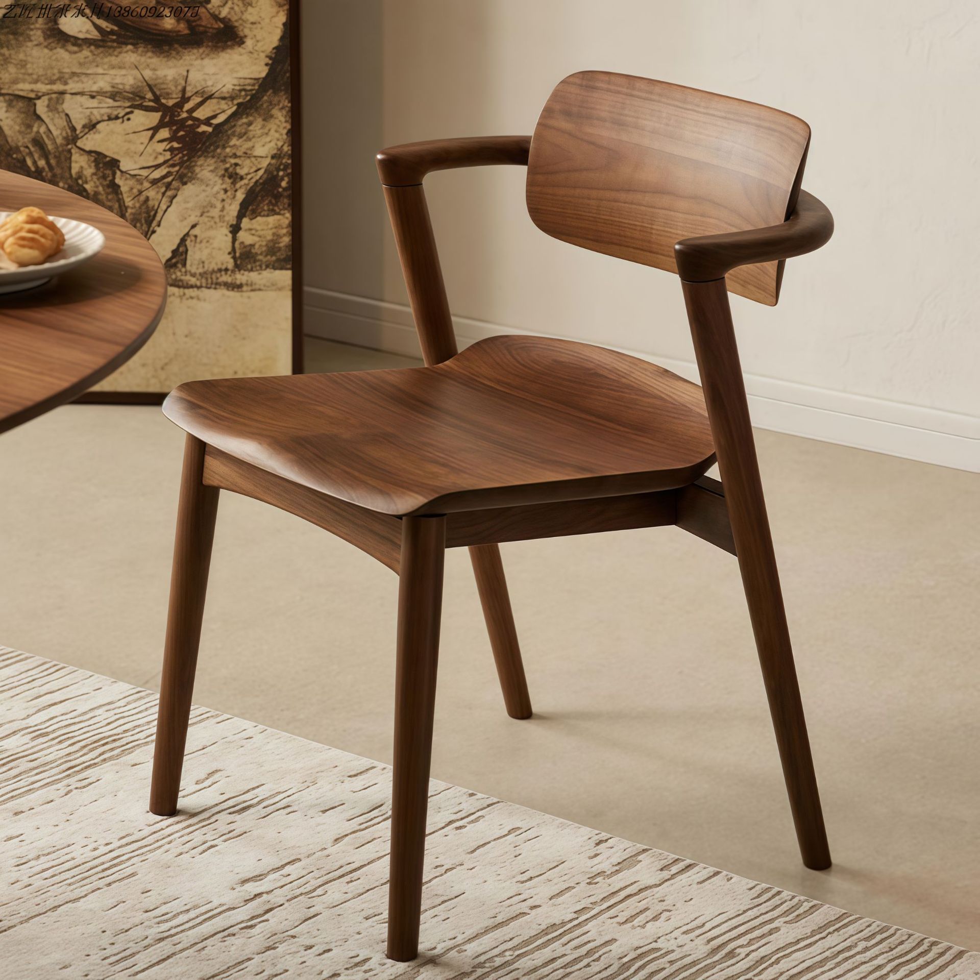 Kursi Makan Nordik, kayu solid restoran kursi model desainer hotel sederhana negosiasi modern dengan sandaran tangan