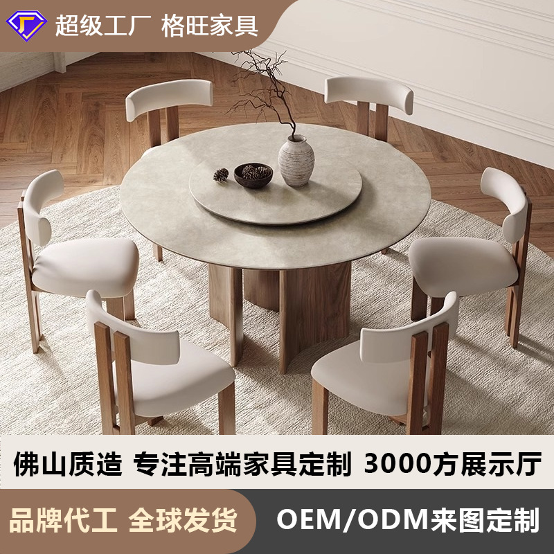 Meja makan kayu solid bergaya Tiongkok Modern dan kursi kombinasi meja bulat rumah tangga dengan meja putar kompor induksi bulat meja makan restoran meja bulat besar