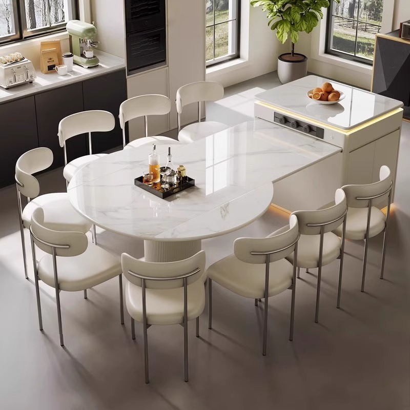 Meja Makan Pulau Multifungsi Meja Makan Terintegrasi Rumah Tangga Papan Batu Kelas Atas Teleskopik Meja Bundar Variabel Meja Bundar Pulau Model Baru