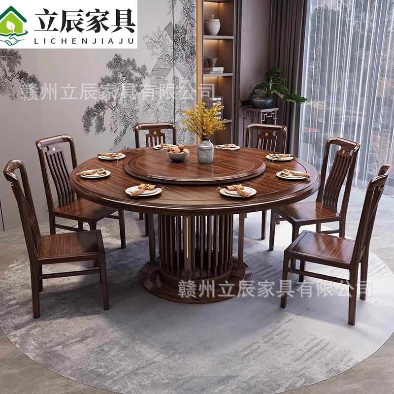 Meja Makan dan Kursi Papan Batu Wujin Kombinasi Gaya Tiongkok Baru Ringan Rumah Mewah Restoran Kelas Atas Kayu Solid Meja Bundar Besar dengan Meja Berputar