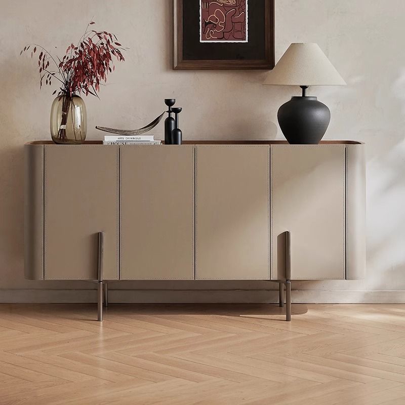 Lemari Samping Papan Batu Minimalis Gaya Italia Lemari Penyimpanan Kulit Saddle Kayu Solid untuk Ruang Tamu Rumah Tangga Tipe Kecil