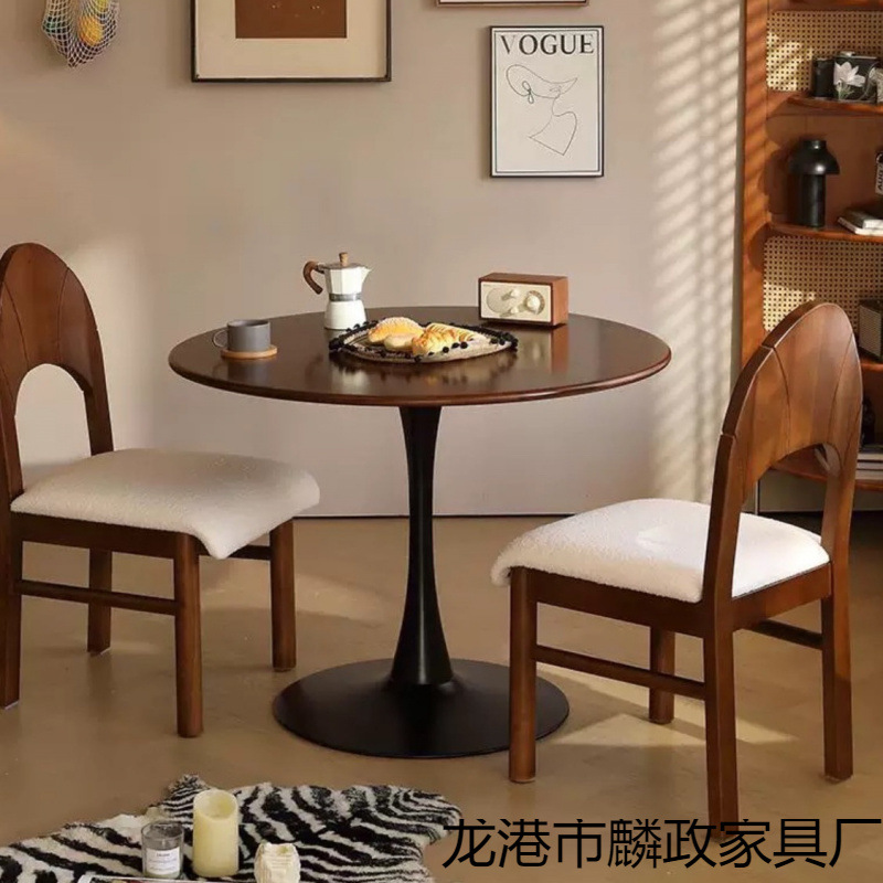 Meja Meja Bundar Kayu Solid Vintage Kenari Eropa Utara