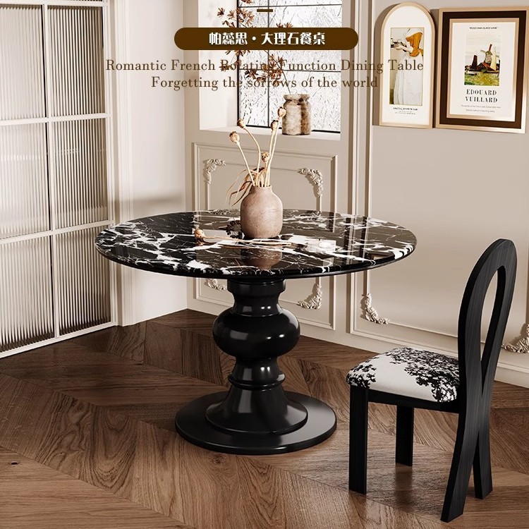Meja Bundar Marmer Gao Geli Retro Prancis 2025 Meja Bundar Rumah Tangga Tipe Rumah Kecil Meja Bundar Kayu Solid Krim