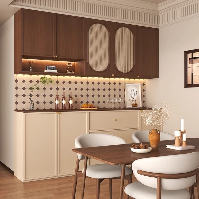 Lemari Makan Gaya Pertengahan Loker Penyimpanan Terpadu di Dinding Ruang Tamu Lemari Dapur Rumah Tangga Lemari Ruang Makan Lemari Samping Teh