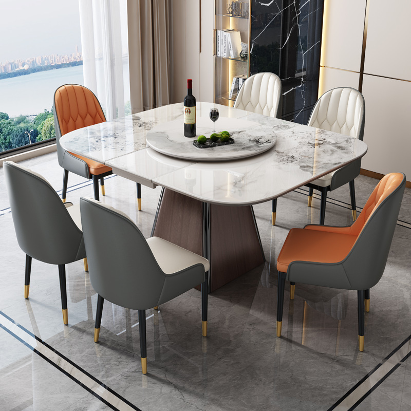 Meja Makan Papan Batu Persegi Teleskopik Mewah Ringan Meja Makan Terintegrasi dengan Kompor Induksi