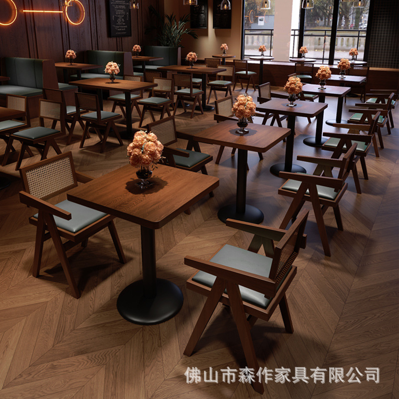 Kombinasi Meja dan Kursi Kafe Retro Toko Teh Susu Komersial Tempat Duduk Sofa Kursi Kasual Model Sama dengan Starbucks